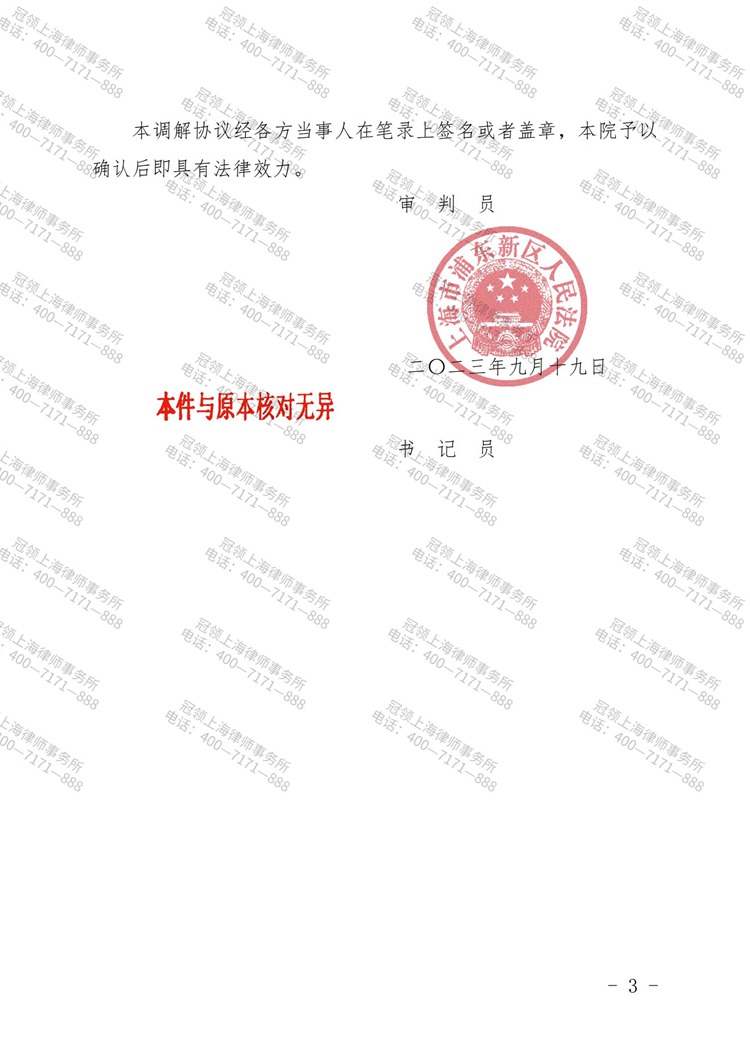 上海普陀的龚女士因分割父亲遗产问题与继母发生纠纷,遂委托北京冠领(上海)律师事务所律师代理起诉维权。近日,冠领律师利用调解技巧顺利代理龚女士与继母达成调解协议,各方以平和方式结束矛盾。