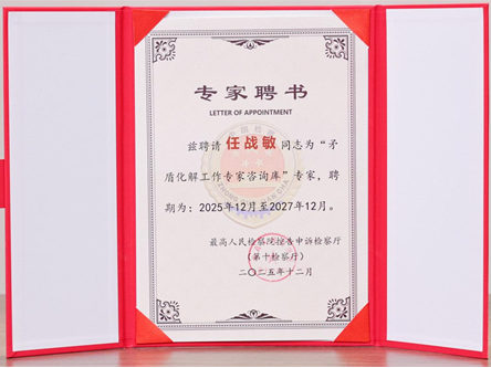 任战敏受聘为最高人民检察院控告申诉检察厅“矛盾化解工作专家咨询库”专家